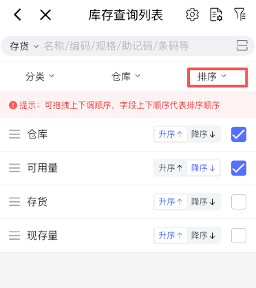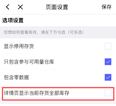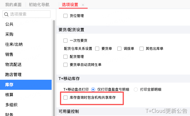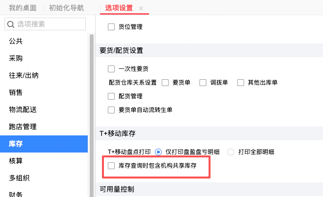 选项中,可以设置移动端库存查询时,是否能够查到共享给本机构的库存,不勾选时,只能查到有权限的库存。
